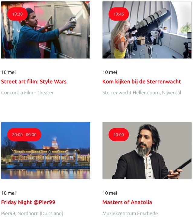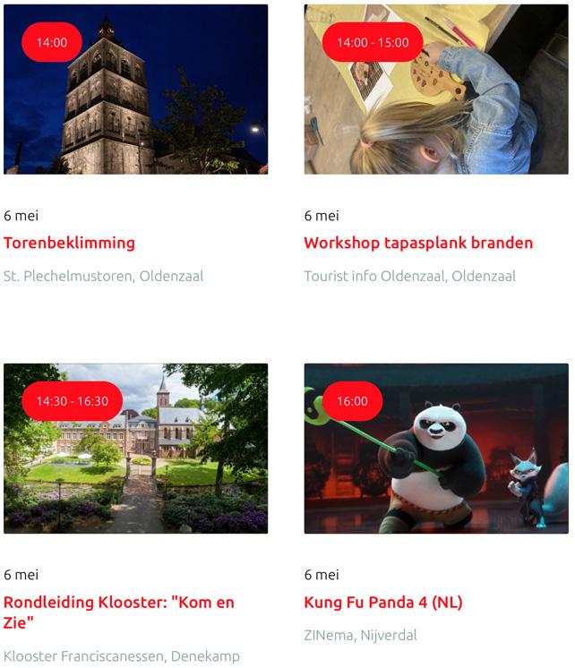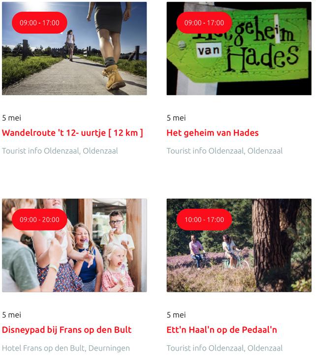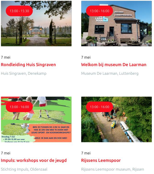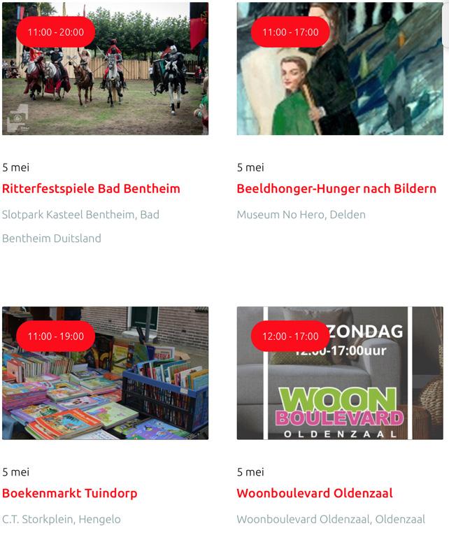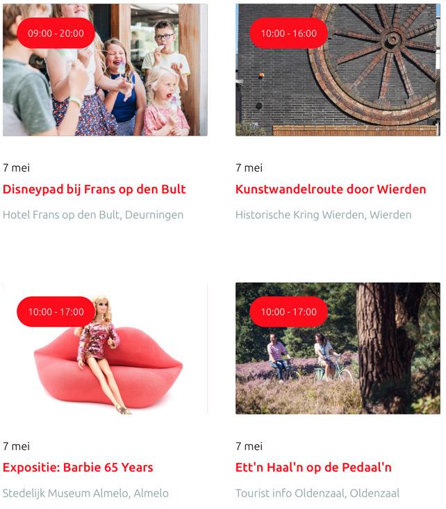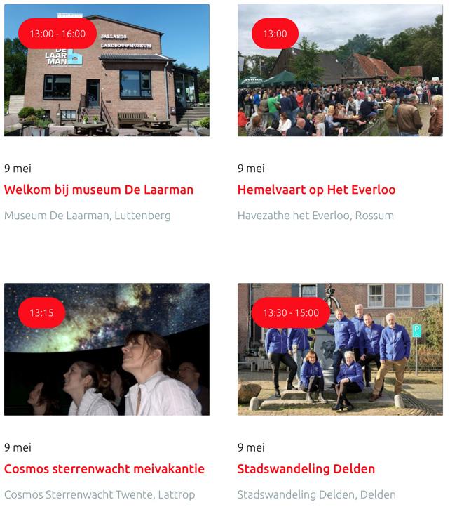 Voor een actueel overzicht kijk op: www.visittwente.nl/uitagenda of www.uittwente.nl. Evenementen en activiteiten aanmelden kan via de plaatselijke VVV/Tourist Info en redactie@twentejournaal.nl
