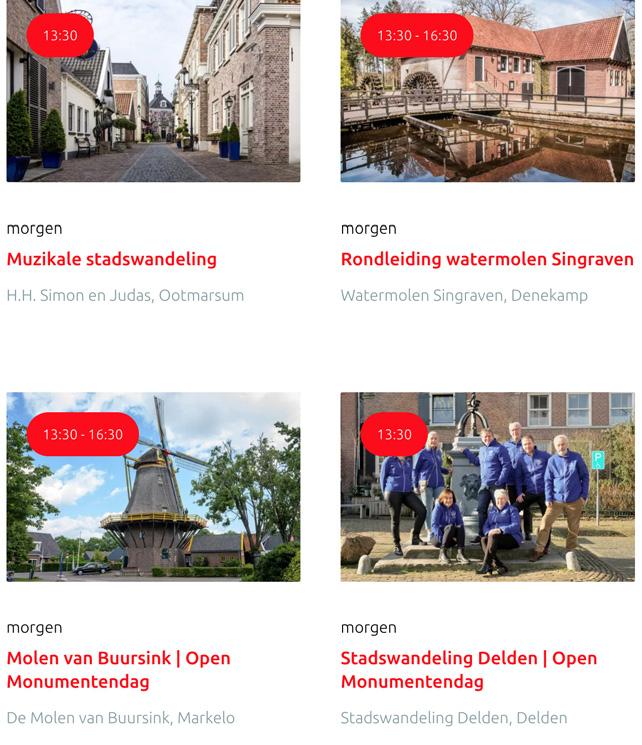 Voor meer informatie en (openings)tijden van monumenten en rondleidingen kijk je op www.openmonumentendag. nl/activiteit/fietsroute-oldenzaal. Op www.palthehuis.nl/openmonumentendag2023 kun je alvast de route downloaden. Lukt dit niet, dan is de route vanaf maandag 4 september verkrijgbaar bij Tourist Info Oldenzaal of bij het Palthe Huis. Op de dag zelf ligt de route klaar bij het startpunt; de Plechelmusbasiliek.