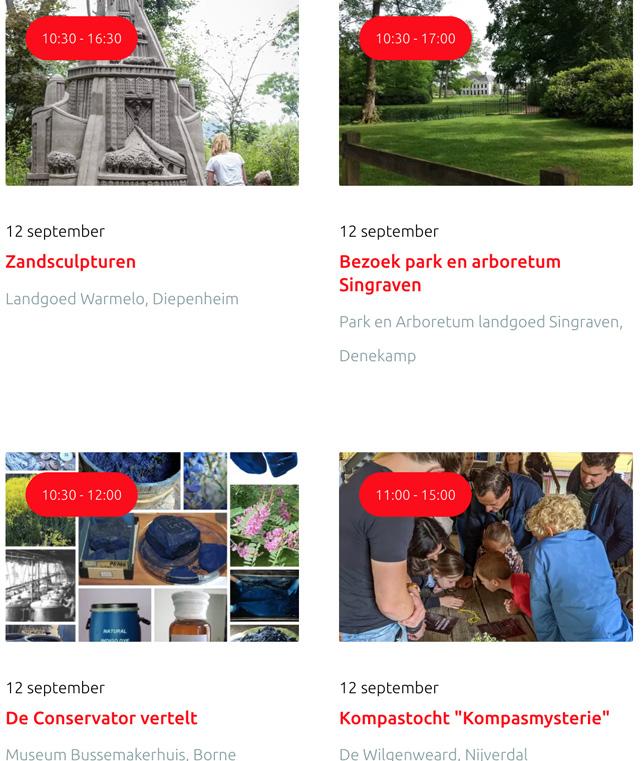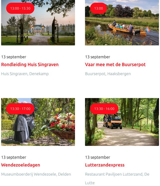 • 10 september om 14.30 uur: lezing Levend erfgoed door Bert Hallink / Evert Jan Krouwel van Ter Steege Vastgoed.