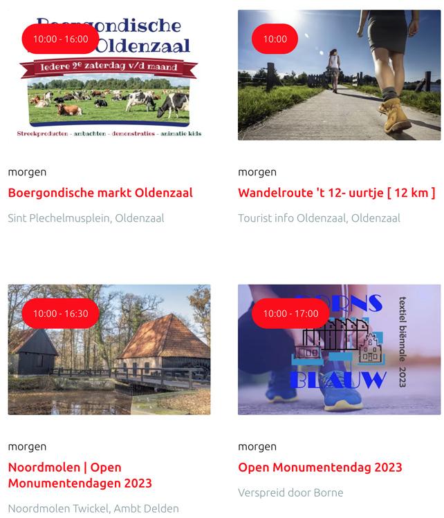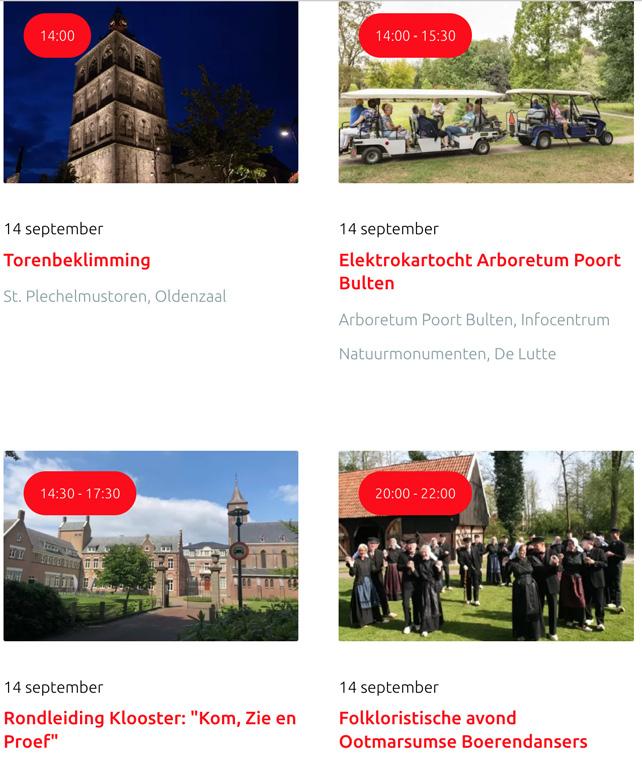 Voor een actueel overzicht kijk op: www.visittwente.nl/uitagenda of www.uittwente.nl. Evenementen en activiteiten aanmelden kan via de plaatselijke VVV/Tourist Info en redactie@twentejournaal.nl