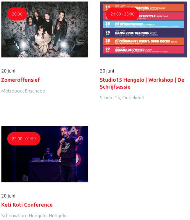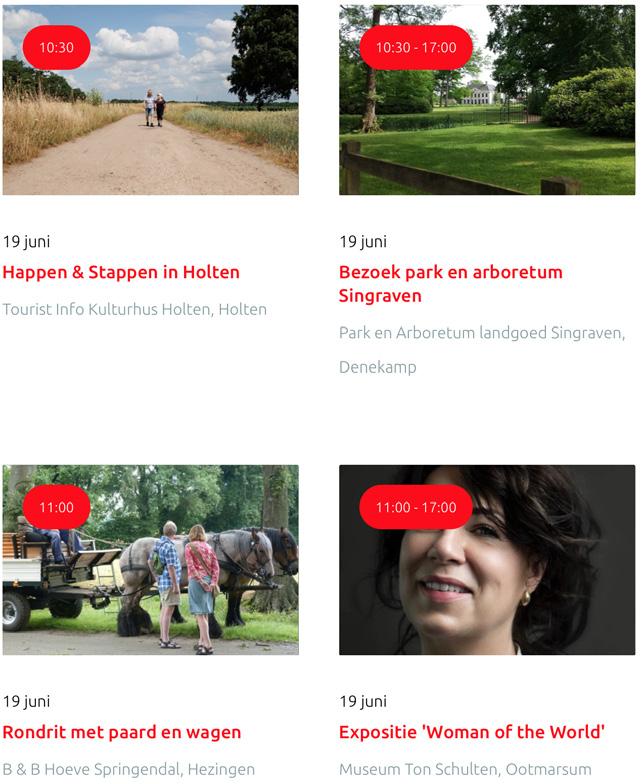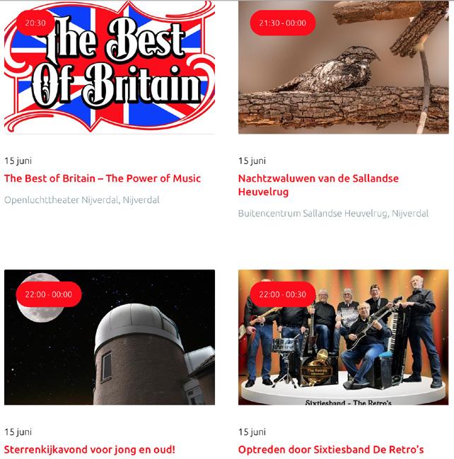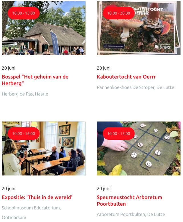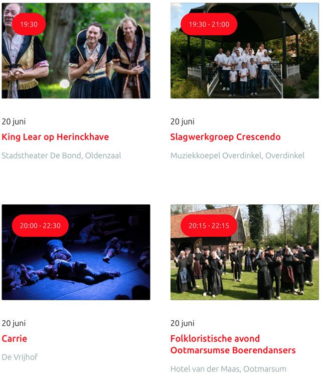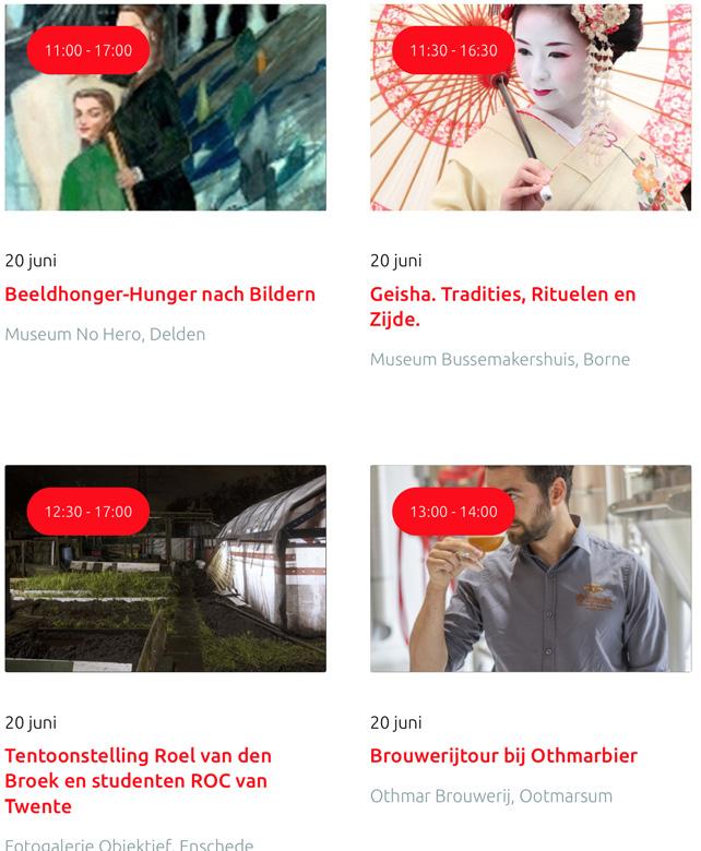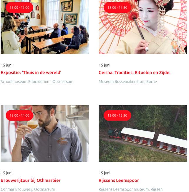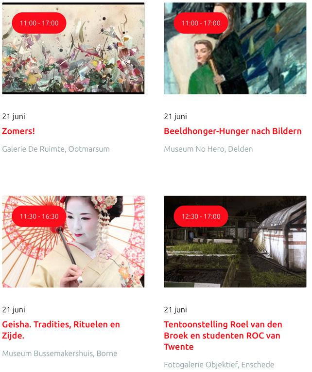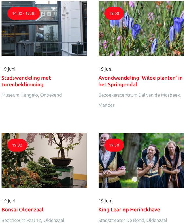Voor een actueel overzicht kijk op: www.visittwente.nl/uitagenda of www.uittwente.nl. Evenementen en activiteiten aanmelden kan via de plaatselijke VVV/Tourist Info en redactie@twentejournaal.nl