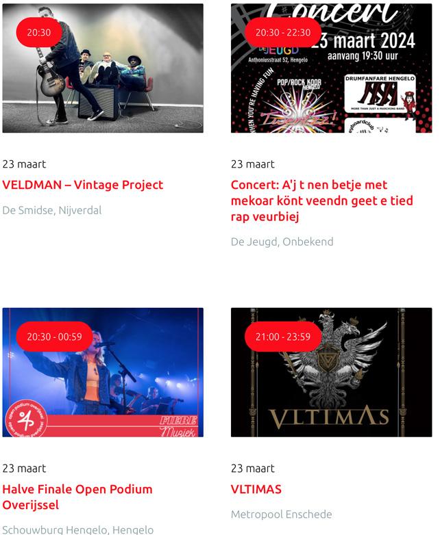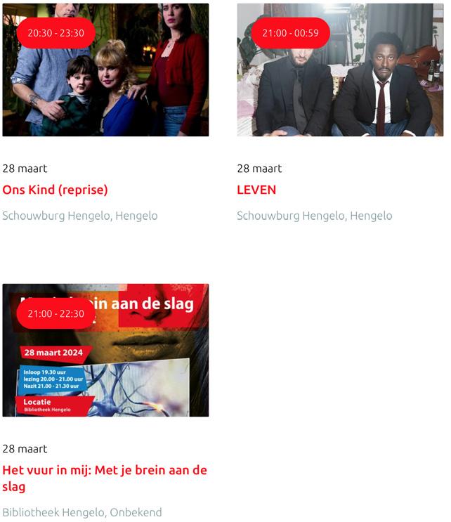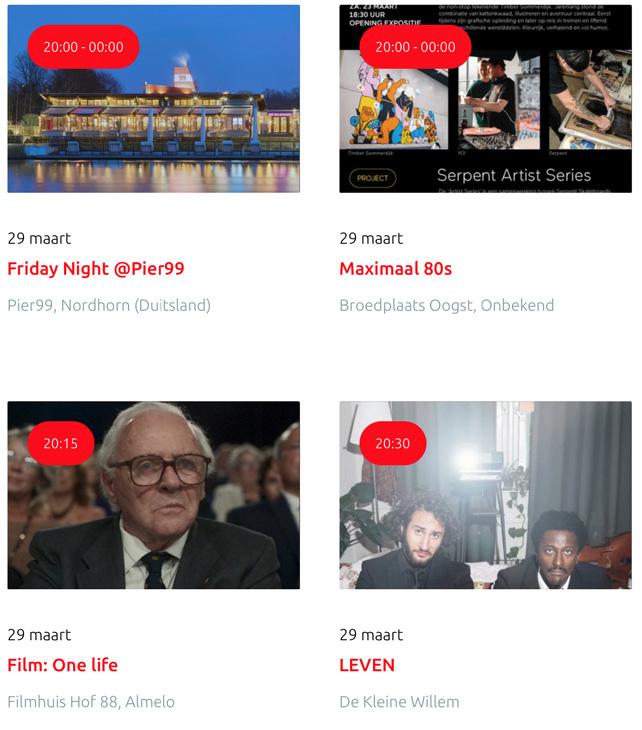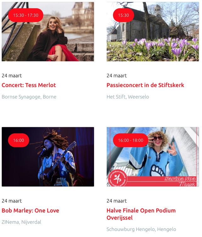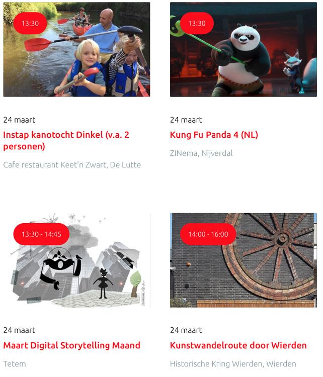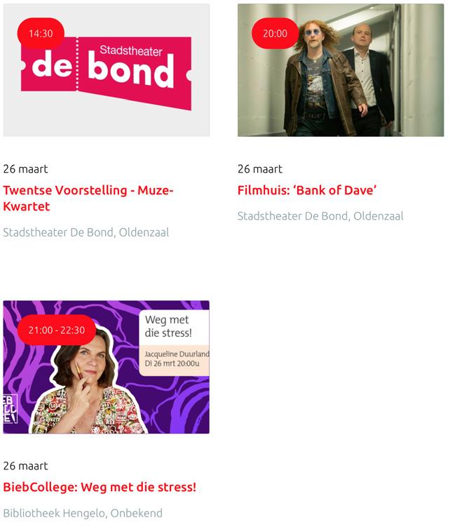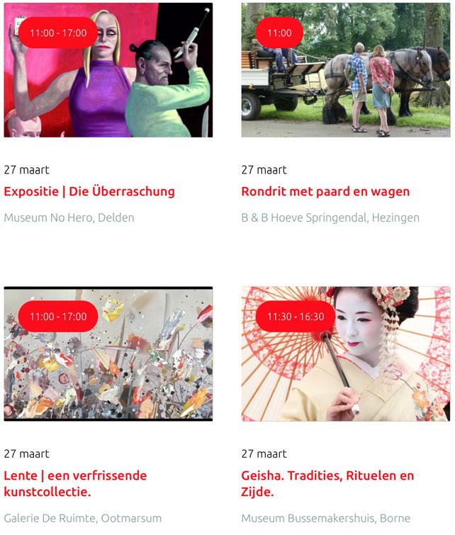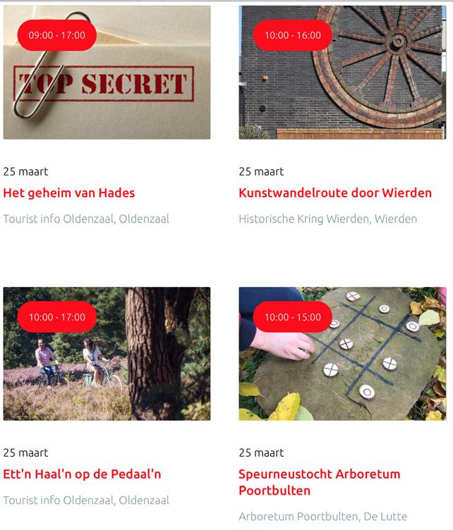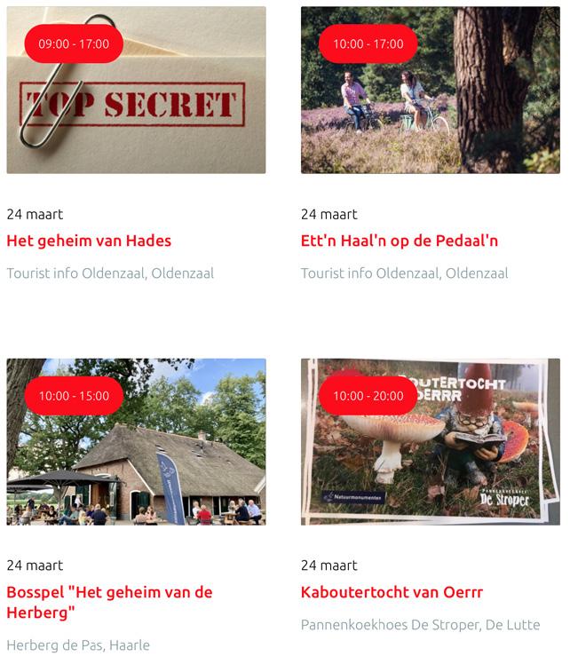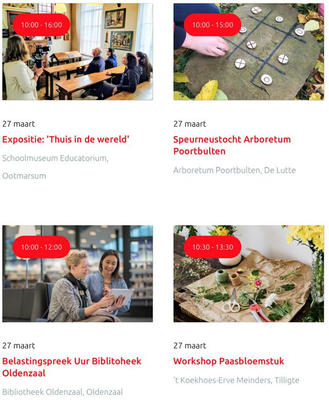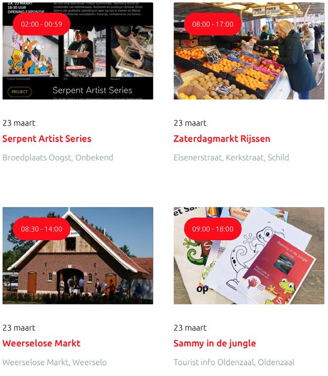 Voor een actueel overzicht kijk op: www.visittwente.nl/uitagenda of www.uittwente.nl. Evenementen en activiteiten aanmelden kan via de plaatselijke VVV/Tourist Info en redactie@twentejournaal.nl