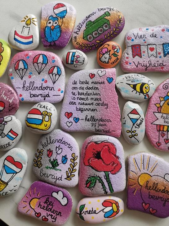 In het kader van 79 jaar bevrijding heeft de organisatie 150 stenen laten schilderen. Allemaal hebben ze te maken met de bevrijding of het rood/wit/blauw. Deze stenen worden in de loop van 22 maart tot en met 15 april op verschillende dagen over het dorp Hellendoorn verspreid.