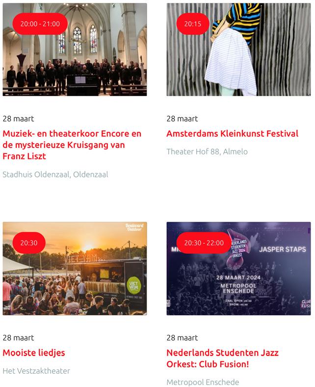 Deze uitagenda is opgesteld in samenwerking met www.visittwente.nl. De redactie wordt gedaan door de VVV/Tourist Info’s in Twente.