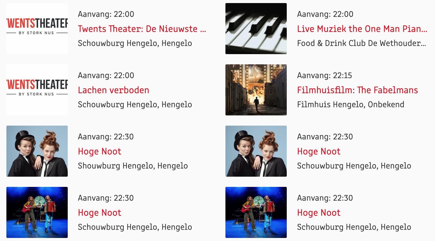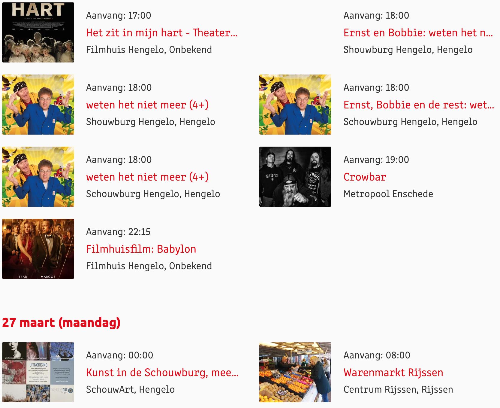 Deze uitagenda is opgesteld in samenwerking met www.visittwente.nl. De redactie wordt gedaan door de VVV/Tourist Info’s in Twente.