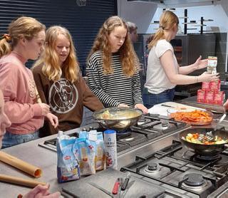 Jongerencoach Joyce Hollander begeleid de leerlingen die kiezen voor de flexuren koken.