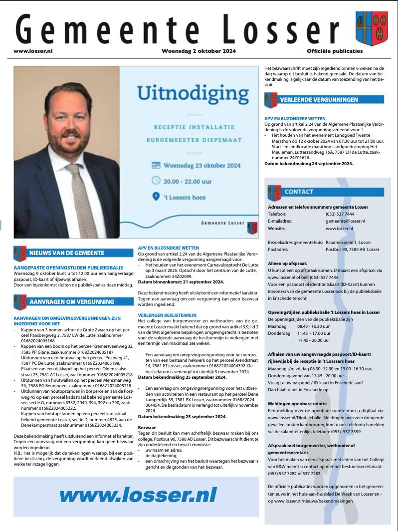 Advertenties en gesponsorde berichten: Maurice Weustink 06-51 420 945 info@LosserMagazine.nl