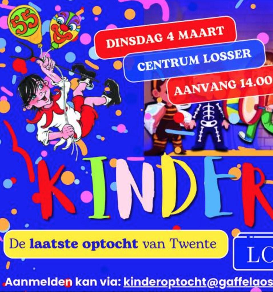 Op dinsdag 4 maart organiseren we de allerlaatste kinderoptocht in Twente en we hopen dat zoveel mogelijk kinderen hieraan deelnemen. Het belooft een fantastische stoet te worden en jullie kunnen hier deel van uitmaken!
