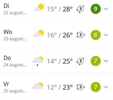 Voor liefhebbers van warm zomerweer is er hoop. De dagen daarna loopt de temperatuur mogelijk verder op. Met een oostenwind wordt namelijk warmere lucht naar ons land aangevoerd en op uitgebreide schaal kan het dan weer zomers warm worden. Zelfs tropische temperaturen zijn richting volgend weekend niet uitgesloten, al is dat natuurlijk nog wel ver weg.