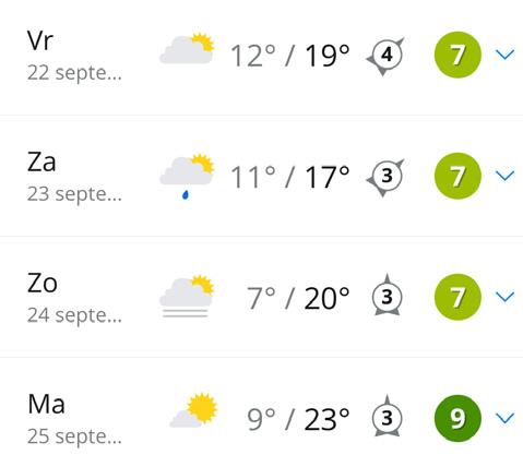 Dinsdagmiddag komen we nog iets hoger uit. Dat geldt ook nog voor de woensdag, maar dan zien we vanuit het zuidwesten de bewolking al toenemen. ’s Avonds volgt waarschijnlijk wat regen of een bui. De rest van de week lijkt meestal licht wisselvallig te verlopen met soms een bui, maar ook zeker nog ruimte voor de zon. Daarbij wordt het minder warm met maxima dan veelal rond of iets onder de 20 graden.