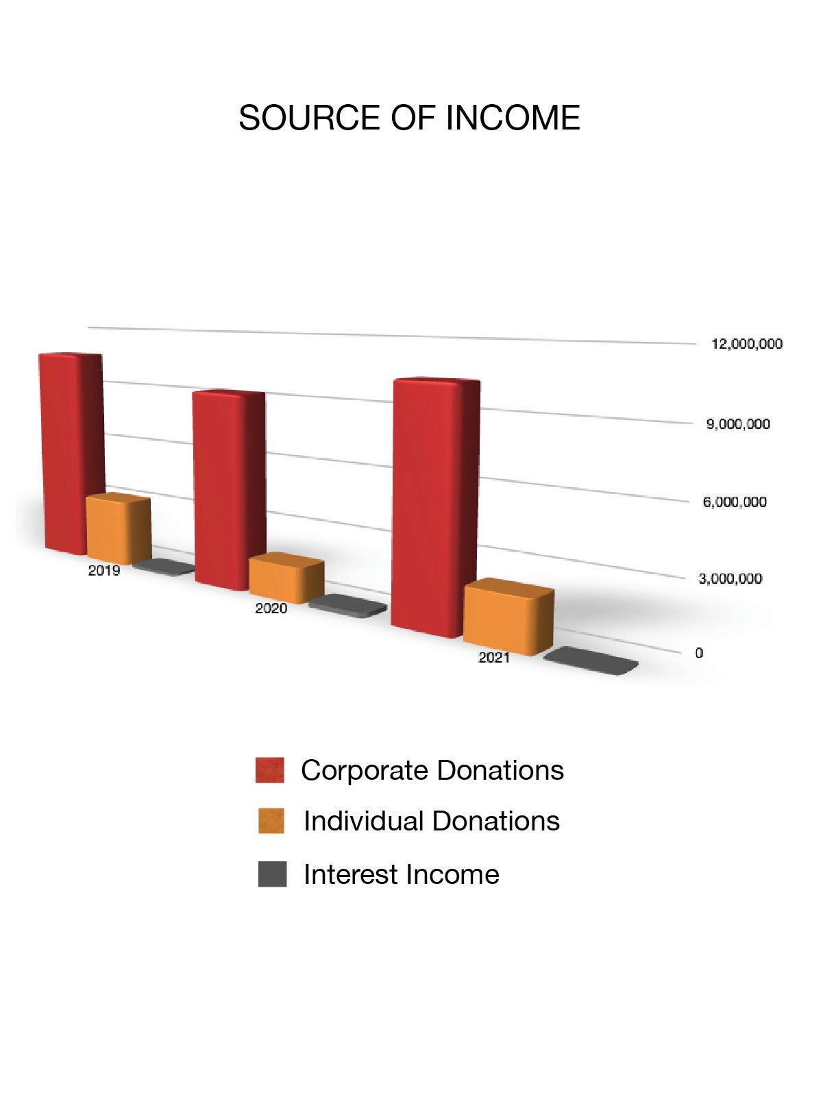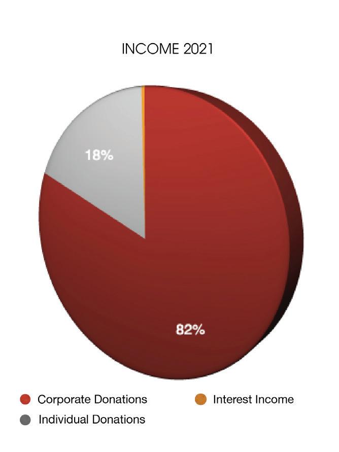 Corporate sourced funding (HK$10.4m in 2021 vs HK$9.3m in 2020) continues to be our most important source of revenue, accounting for 82% of income in 2021 (an increase from 76% in 2020). We are thankful to our generous corporate sponsors for continued support of our highly regarded programmes and initiatives such as our Girls Go Tech Programme, Digital Literacy Programme for disadvantaged families and daughters, flagship Mentoring Programme for Women Leaders and our Male Allies Initiative. We are truly grateful for the encouraging support for our in-person Gala event after consecutive virtual fundraising events. In recent years, corporate funding has become increasingly challenging to secure, and generally on a shorter commitment cycle. We continue to work to diversify our funding sources and warmly welcome interest from corporates interested in sponsoring our programmes.