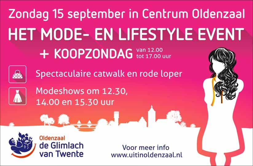 Stichting Oldenzaal Promotie is verantwoordelijk voor de evenementen en citymarketing van Oldenzaal en beheert de Tourist Info aan de Grootestraat 35-37 in Oldenzaal. Meer weten? Kijk op de website www.uitinoldenzaal.nl⁄agenda-item ⁄ 12 8807 mode-event-oldenzaal-koopzondag