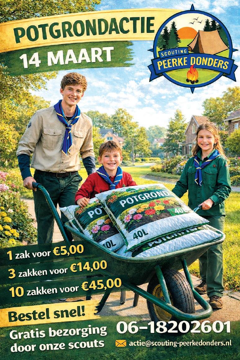 Wilt u deze zomer uw tuin vol met bloeiende planten dan is de potgrond van Scouting Peerke Donders een goed idee! Bestel daarom uw potgrond bij ons en u hoeft hier de deur niet meer voor uit. Want wij komen de potgrond op zaterdag 14 maart gratis bij u bezorgen.