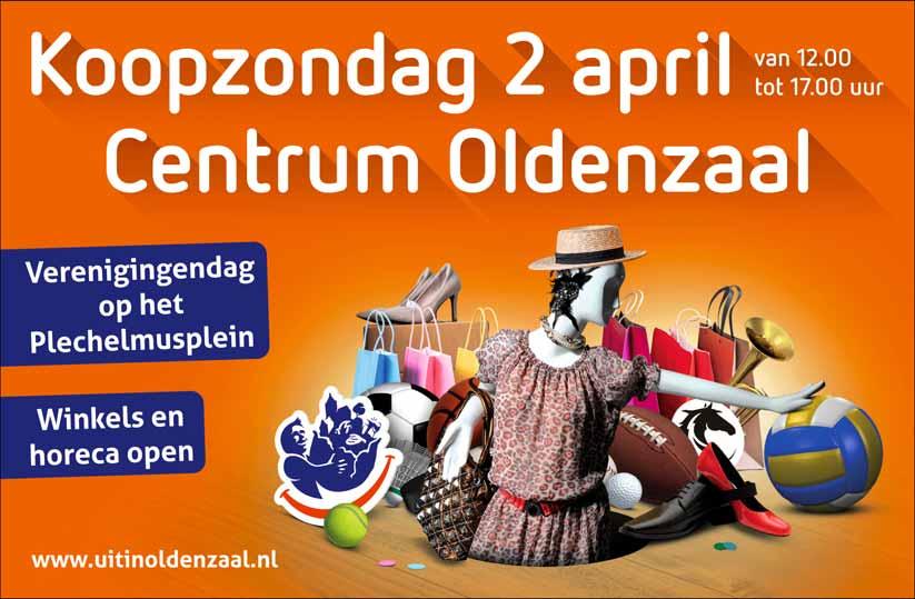 verstopplek gegeven. Degene die het gouden ei als eerst heeft gevonden, belt het telefoonnummer dat in het ei zit en wint een mooie prijs van Willemsen Mode (cadeaubon t.w.v. € 50,00), Thijs (een chocoladepaashaas van 1 kilo) of een Oldenzaalse cadeaubon.