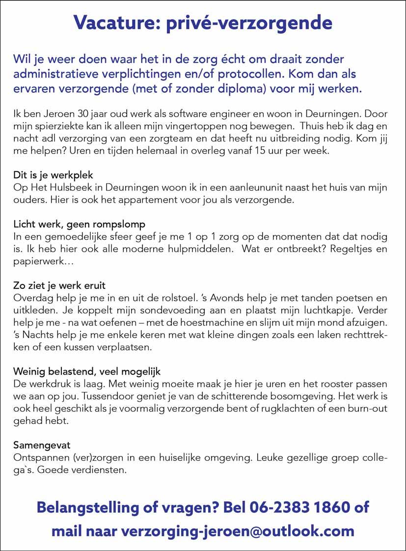 PLAATS OOK UW ADVERTENTIE OP DEZE VACATUREPAGINA.