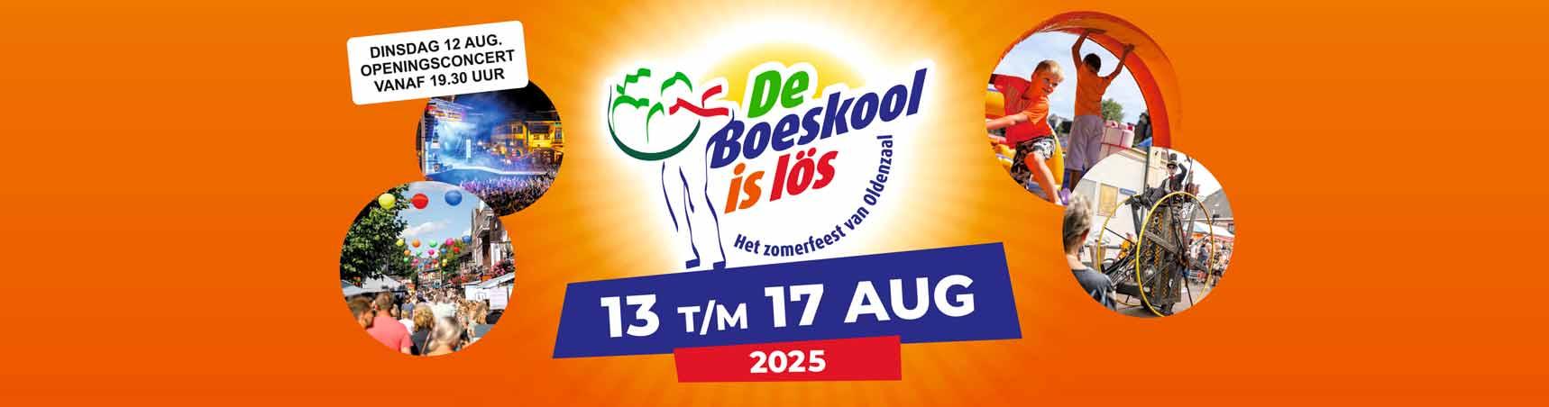 Van 12 t m 17 augustus 2025 staat Oldenzaal weer volledig in het teken van De Boeskool is Lös. Met vele podia, een goed gevulde braderie, de leukste winkels, gezellige terrasjes, heerlijk eten en de beste artiesten is er van ’s ochtends vroeg tot ’s avonds laat genoeg te zien en te doen!