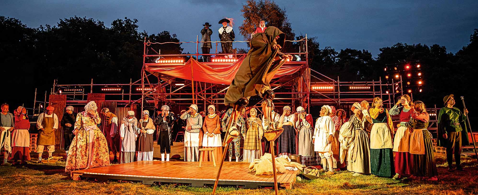 Deze week in de Glimlach Huttenkloas,theaterspektakelindrukwekkend op Oldenzaals galgenveld