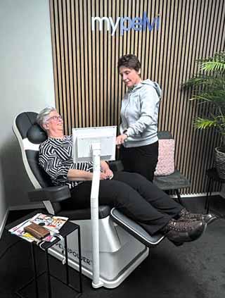 MyPelvi is een bekkenbodemtrainer in de vorm van een stoel. Een sessie vindt plaats op deze stoel die door middel van magnetische impulsen in 22 minuten meer dan 25.000 spierbewegingen opwekt. Dit zijn zachte, pijnvrije spiersamentrekkingen met een zeer krachtig effect. ‘Tijdens de sessies zijn mensen volledig gekleed in hun normale kleding. Ze verrichten geen enkele inspanning ondergaan de sessie ontspannen zittend. Na afloop voelt het lichaam alsof het een training heeft gedaan’, zegt Linda. Onder begeleiding van Linda of Marije plan je samen evaluaties in en kun je altijd met vragen bij ons terecht.