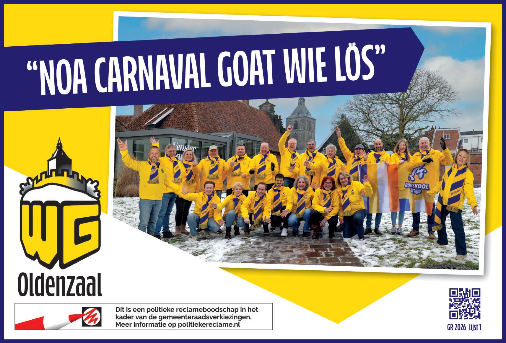 Juist dát maakt carnaval in de Boeskoolstad zo bijzonder. Iedereen is gelijk, rangen en standen zijn er niet en wat overblijft is gezelligheid. Het is prachtig om te zien hoe verenigingen, organisaties, ondernemers en vrijwilligers de schouders eronder zetten om iets moois neer te zetten. Dat is Oldenzaal op z’n best: betrokken, creatief en met die onmiskenbare glimlach.