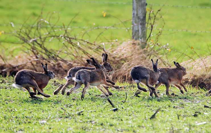 De afgelopen weken zie ik ze geregeld over de weilanden rennen,rammelende hazen. Nadat er vorig jaar en variant van myxomatose was uitgebroken zijn ze flink in aantal afgenomen maar gelukkig doen ze goed hun best om daar verandering in te brengen. Tijdens de rammeltijd zie je soms grote groepen hazen achter elkaar aan rennen waarbij ze hun hele omgeving niet of nauwelijks op lijken te merken. Vaak rennen meerdere rammelaars (m) achter een moer (v) aan waarbij het er soms heftig aan toe gaat middels boksen en de haren letterlijk in het rond vliegen. Uiteindelijk kiest de moer een rammelaar waarmee ze gaat paren en 6 weken later wacht de geboorte...