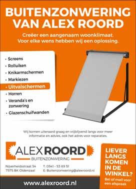 Gronausestraat 9A, 7581 CC Losser - tel. 0541 530 372 www.kringloopbedrijfdebeurs.nl Vrijwilligers worden bij De Beurs? Neem contact op voor meer informatie! 15% KORTING Screens/rolluiken Ook verkrijgbaar met solar Teylersstraat 11, 7581 AH Losser, tel 0535381719 info@bendylosser.nl • www.bendylosser.nl