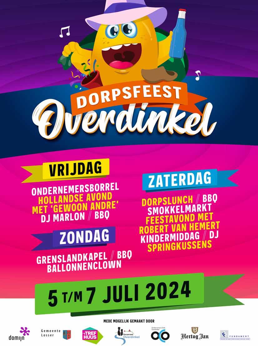 Het Dorpsfeest Overdinkel wordt in het weekend van 5 tot en met 7 juli gehouden. In samenwerking met diverse lokale partijen organiseert 't Trefhuus voor het eerst het vernieuwde dorpsfeest in Overdinkel.