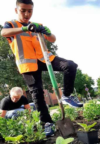 maken voor zwarte aarde en planten. Wethouder Jaimi van Essen sloot zich donderdag 13 juli bij de harde werkers aan om de planten in de grond te zetten: “Grijs eruit, groen erin. Super dat ook de leerlingen van het Twents Carmel College ons laten zien wat we nog allemaal kunnen vergroenen in Losser!”