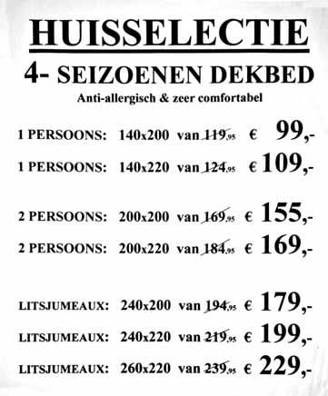 1 persoons: 140x 200 van 119,95 € 99,-