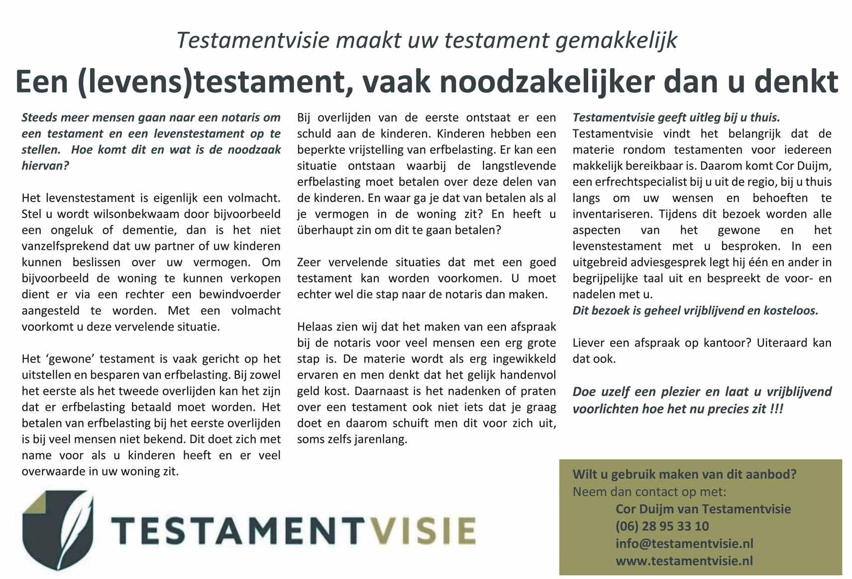 Uiterste aanleverdatum is maandagmorgen 12.00 uur voor plaatsing op woensdag.