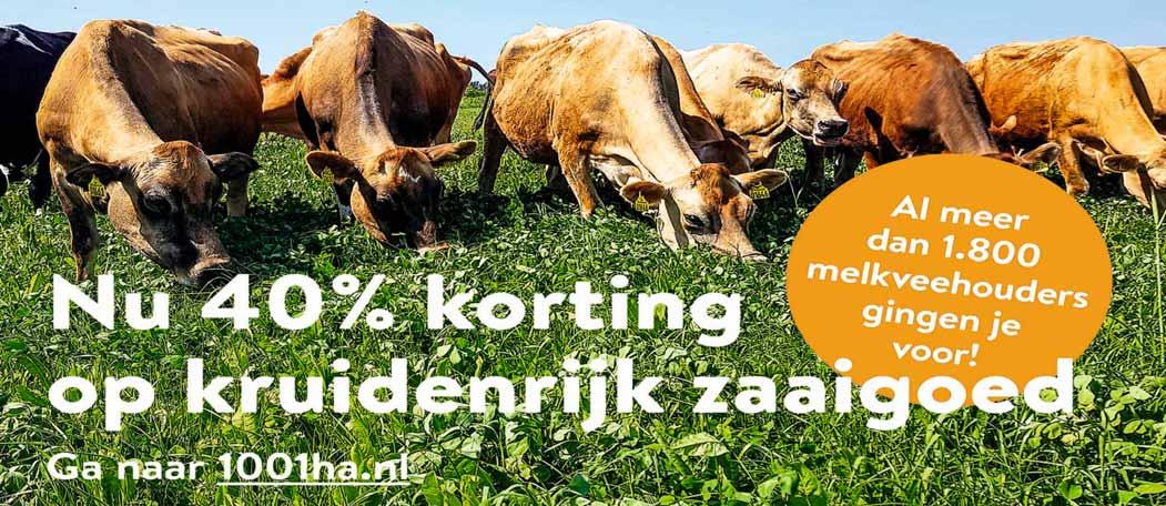 Vanaf begin maart kunnen melkveehouders in gemeente Losser weer flinke korting kr ij gen op 6 hectare aan kruidenr ij ke zaadmengsels. De gemeente betaalt mee aan de kortingsactie 1001ha van LTO Nederland en Urgenda. De afgelopen 4 jaar hebben 1.800 melkveehouders in Nederland op 8.000 hectare laten zien dat kruidenrijk grasland grote voordelen heeft voor boer, bodem, klimaat en natuur.