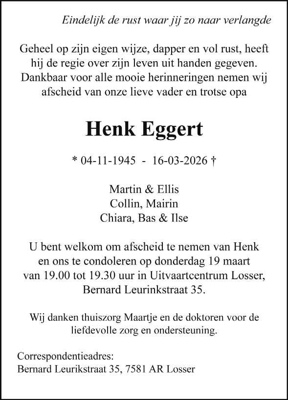 Voor de officiële publicatie van de gemeente Losser kijk op de voor laatste pagina’s in dit blad.