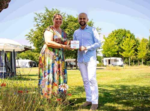 Om dit te vieren overhandigde wethouder Milad Lahdo een erkenningsbordje ‘Beste kampeerlocatie van Overijssel 2025’ aan Camperplaats Erve Velpen in De Lutte en aan Mini Camping & Vakantiehuisjes De Veldzijde in Losser. Alle campings in de gemeente ontvangen dit bordje als blijk van waardering voor hun bijdrage aan een aantrekkelijke en gastvrije kampeeromgeving .