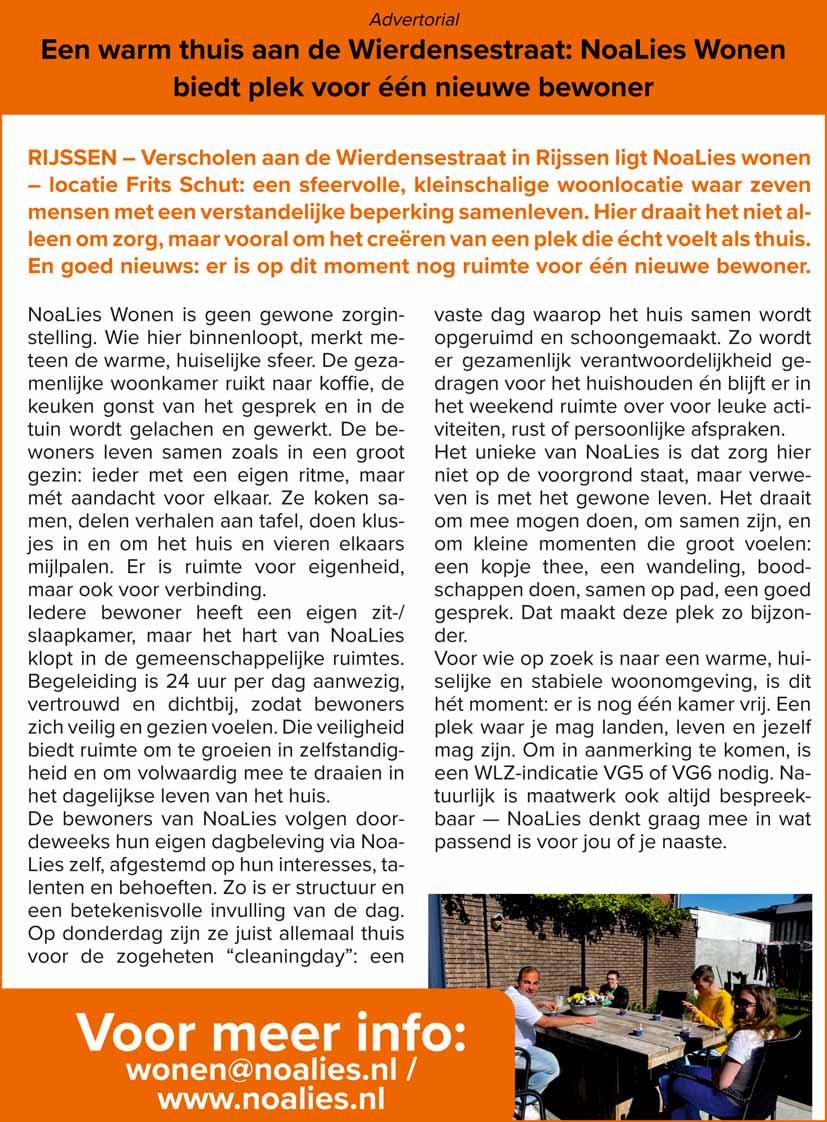Uiterste aanleverdatum is maandagmorgen 12.00 uur voor plaatsing op woensdag.