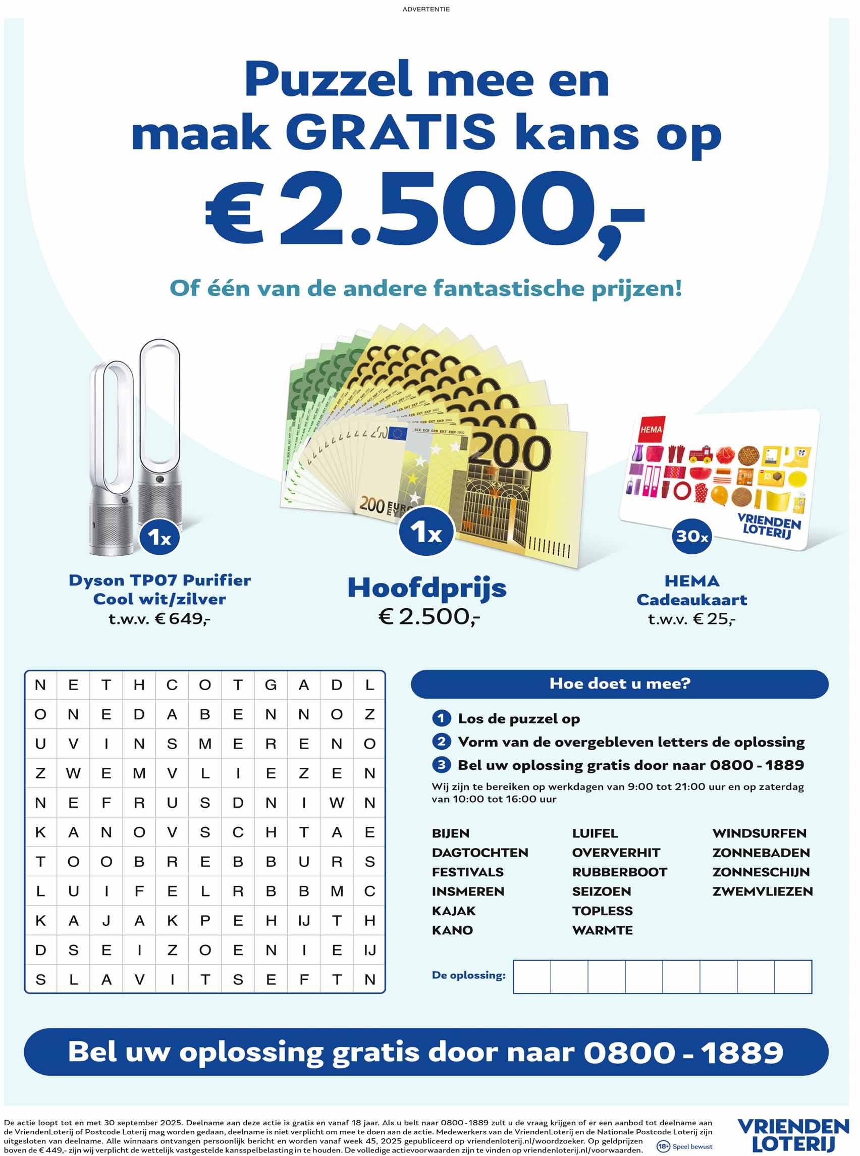 Uiterste aanleverdatum is maandagmorgen 10.00 uur voor plaatsing op woensdag.