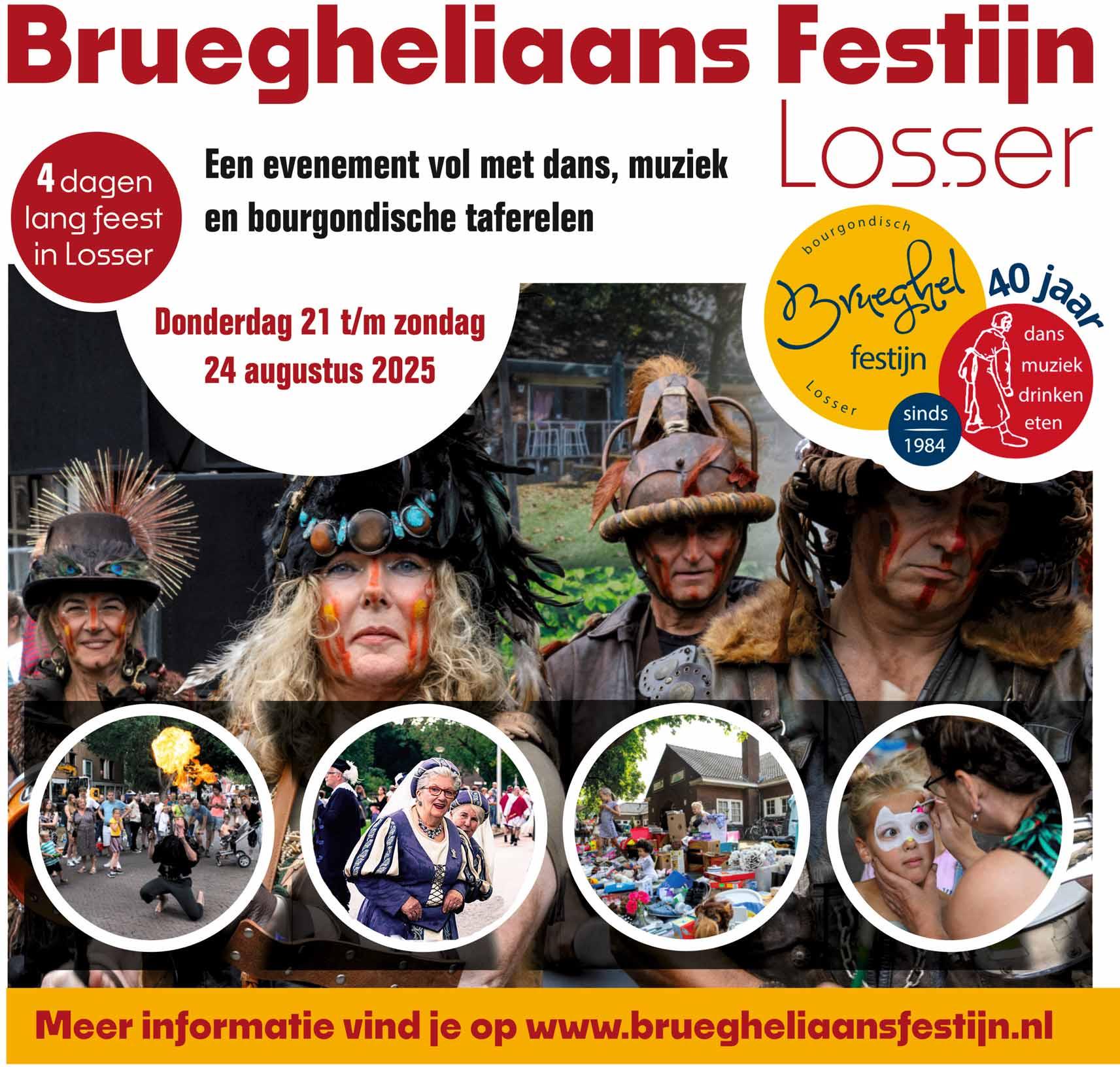 Het Bruegheliaans Festijn is een feest voor iedereen. Voor kinderen die vol verwondering kijken naar oude ambachten. Voor ouders die samen genieten van een goed glas en een goed gesprek. Voor gasten van buiten, die zich direct welkom voelen. En voor alle Lossenaren die trots zijn op hun dorp.