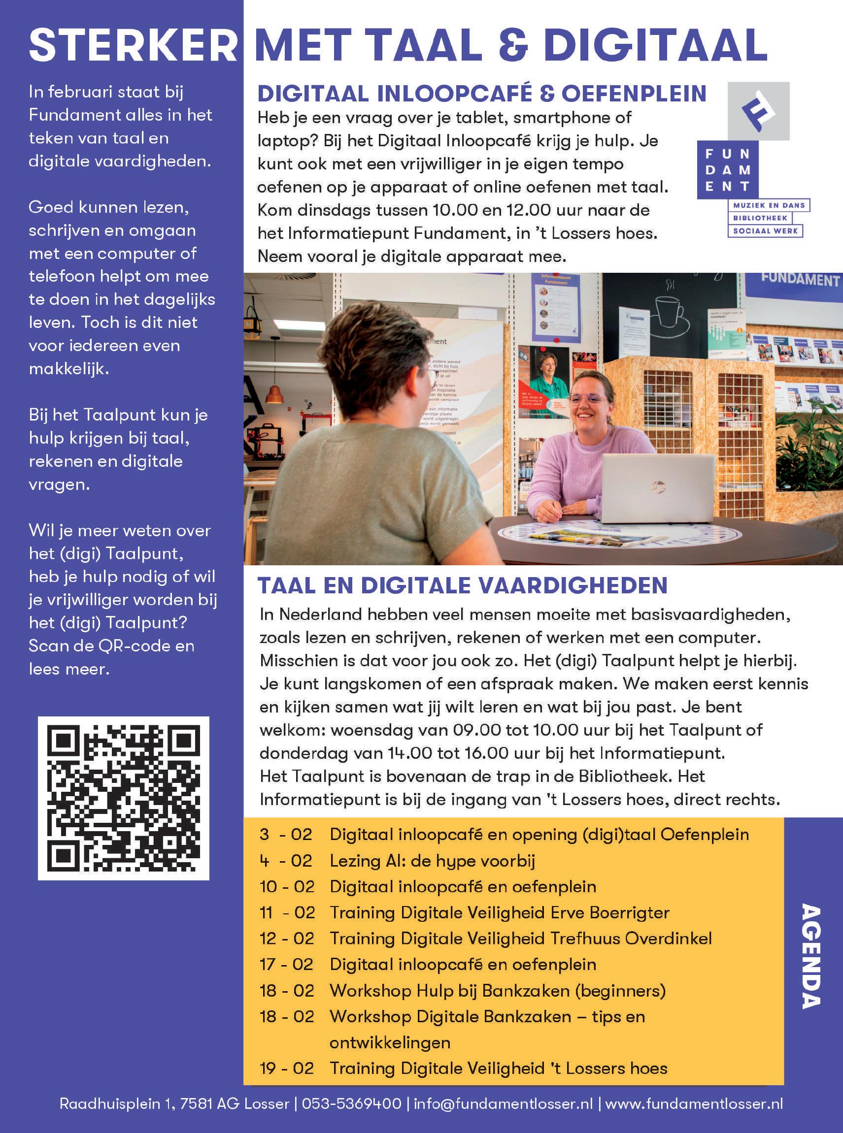De lezing is op woensdag 4 februari van 19.30 tot 21.00 uur in de bibliotheek in ’t Lossers hoes. Aanmelden kan tot uiterlijk 1 februari via info@fundamentlosser.nl of bel 053-5369400.