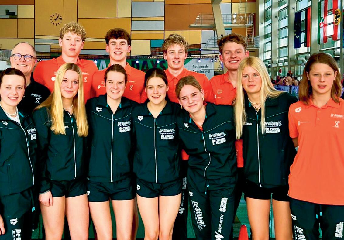 voor de “elimination race” (een afvalrace over 4 sprintafstanden). Helaas viel hij uit na de eerste afstand, de 50m schoolslag, maar wel met een super PR. In totaal sneuvelden er 22 persoonlijke records, met de grootste tijdsverbetering voor Mila op de 100m vlinderslag. Zondagavond verliep de terugreis naar Denekamp dan ook moe maar zeer voldaan.
