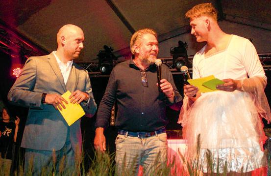 Het Volksfeest Oatmössche was afgelopen weekeinde weer één groot feest. Het programma werd vrijdag officieel geopend door de burgemeester van Dinkelland John Joosten. Op de foto proost hij met Jurgen Kleine Schaars, de voorzitter van de Stichting Oatmössche Joa!
