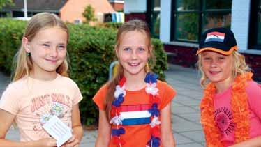 Het was woensdagmorgen 19 juli groot feest op school. Alle kinderen waren in het oranje gekleed en hadden rood wit blauwe vlaggetjes, want juf Ine, ook bekend als Tante Truus, nam afscheid. Na 42 jaar gaat ze met welverdiend prepensioen.