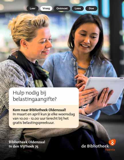 Aanmelden kan via www.bibliotheektwente.nl of telefonisch (na 14.00 uur) op tel. 0541512516.