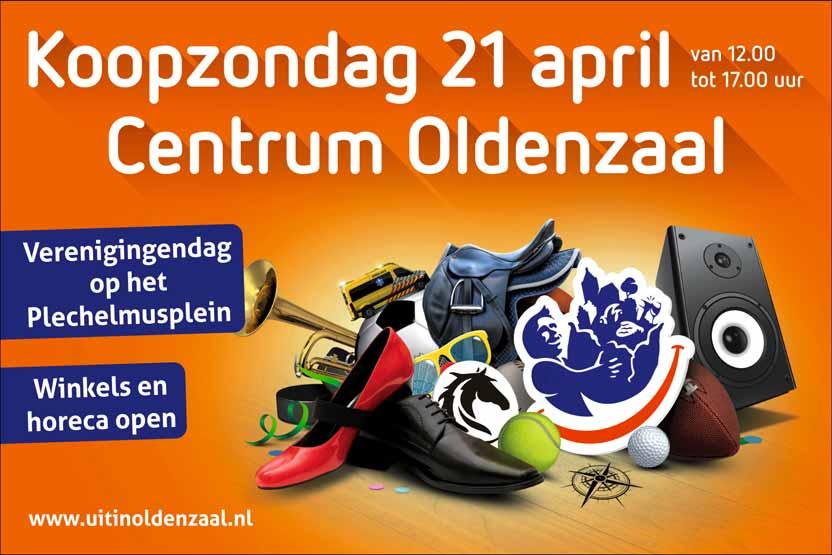 Op zondag 21 april kunt u van 12:00 tot 17:00 uur op het St. Plechelmusplein langskomen bij verschillende kramen met leuke activiteiten en optredens voor iedereen. Er staan kramen van allerlei clubs, verenigingen en stichtingen uit Oldenzaal, die zichzelf presenteren op een leuke en unieke manier!