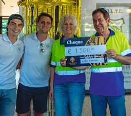 De opbrengst mochten Marijke Egbers, John van Kempen en Bert Hellegers als begeleiders van Klas op Wielen in ontvangst nemen. De deelnemers van deze stichting geven op scholen informatie over het leven