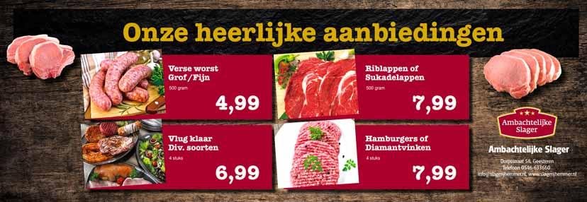 Dorpsstraat 58, 7678 AX Geesteren Telefoon 0546-633660 info@slagerijhemmer.nl www.slagerijhemmer.nl
