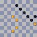 In het middelste diagram sluit Matthijs van Hofwegen op prachtig wijze deze partij af. Op 23 december combineerde hij via 18-23 naar veld 44. Maar Anton Jurg kon hierna door 45-40 (44x35) en daarna 28-22 toch de remise bereiken. Het laatste diagram is de stand na de 26e zet in de partij: Gerald Krol-Eit Veenstra. Beide dammers spelen graag “klassiek” en zijn er langzamerhand heel bedreven in. Wit heeft het kerkhofveld 22 in gebruik genomen. Zwart moet nu een oplossing vinden tegen de dreiging met 34-30! EV kan kiezen uit 24-29 en 24-30. 12-18 gaat een schijf verliezen door 46-41, 34-30, 40x9 en daarna 43-39. Tegen de dreiging met schijfwinst door 28-23 kan niets positiefs meer worden ondernomen.