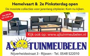 Albergen - Weemselerveld (kavel 16) Almelo - Bornsestraat 265 - Singraven 88 Fleringen - Scholtenbrink 33 Geesteren - Delmaweg 19 - De Smidboer 20 Hengelo - Landmansweg 37 Oldenzaal - Leeuwebek 15 Reutum - Oldenzaalseweg 172 172a Tubbergen - Uelserweg 58 Meer weten? Ga dan snel naar onze website! René Coupée al kwart eeuw stadsomroeper van Almelo Ootmarsumsestraat 246, 7603 AP Almelo. Tel. 0546 - 861 770 Donderdag koopavond tot 20.00 uur Maak ook gebruik van onze achteringang, via parkeerterrein ALDI Janzen 2e product 50% korting ALLE GESCHENKDOZEN EN GEUREN 20% KORTING Voor de kaasklant: (min. 500 gram) VASTE LAGE PRIJS Deldensestr. 74, Almelo Tel.: 06 83708502 Openingstijden: di. t/m do. van 08.00 t/m 17.30 uur vr. van 08.00 t/m 18.00 uur, za. van 8.00 t/m 17.00 uur. 10 grote scharreleieren 1.90 JONG BELEGEN GEITENKAAS 500 gram 4.95 JONG BELEGEN KRUIDNAGELKAAS kilo 9.95 De Kaashoek De lekkerste kaas voor de leukste prijs (max. 4 dozen per klant) HOERA, ER IS WEER GRASKAAS VANAF WOENSDAG 17 MEI kilo 8.50