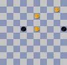In dit eerste diagram laat Stahlberg zich nog verder opsluiten door 16. 39-34 te spelen. De vraag is hoeveel risico je kunt nemen als je per se wil winnen, zoals deze Amsterdamse meester. Het gaat van hieruit verder met 1-7 17. 27-22 18x27 18. 31x22 12-18 19. 37-31 26x37 20. 42x31 18x27 21. 31x22 7-12 22. 41-37 12-18 23. 37-31 18x27 zie 2e diagram. Hierin slaat wit zeer risicovol met 24. 32x21. Vervolg: 23x32 25. 38x27 8-12 26. 33-28 12-18 27. 43-38. Nu 3e diagram. De zet 18-22 levert geen schijfwinst op. Het gaat daarom nu verder met 2-8. 28. 31-26 18-23 29. 38-33 15-20. Er dreigt nu 23-29. Wit geeft op. Overigens was dit een partij uit 1938.