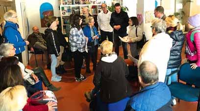 Wethouder Eugène van Mierlo (met zwarte jas, in het midden) tijdens een van de ontmoetingsdagen van Kom Erbij.