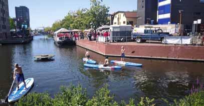 ALMELO – De weergoden was de organisatie van het Havenfestival goed gezin. Misschien iets te goed, want het was afzien afgelopen weekend. Ondanks het warme weer werd er twee dagen volop uitgepakt langs de Almelose waterlijn. Een waar feest voor jong en oud. Van suppen en windsurfen tot modelboten kijken. Je kon het zo actief maken als je zelf wil. Het Marktplein was een wek lang al omgetoverd tot een echt strand, waar overdag volleybalclinics werden gegeven aan de schoolgaande jeugd. In het weekend was het tijd voor het echte werk met het eredivisie beachvolleybal. Zaterdag was de koninklijke marine aanwezig met een klimtoren, een belevingscontainer en een duikplank. Zowel de marine als scouting verzorgde demonstraties en er traden diverse shantykoren op. Tegenover het stadhuis probeerden kinderen voor de zomervakantie begint nog een zakcentje te verdienen op de kinderrommelmarkt. Ouderen die minder mobiel zijn werden opgehaald, maakten een boottochtje onder genot van koffie, thee, krentenwegge en muziek.