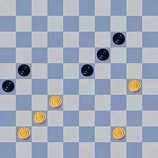 Oplossingen: Alleen de eerste zet wordt hieronder genoemd. Bovenste rij: 47-41; 47-41: 47-41 Tweede rij: 49-43; 37-31; 39-34; Derde rij: 37-31; 38-32; 30-24. Onderaan: 23-18; 27-22.