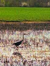 Eenzame reiger in al bijna drooggevallen vijver landgoed Bellinckhof
